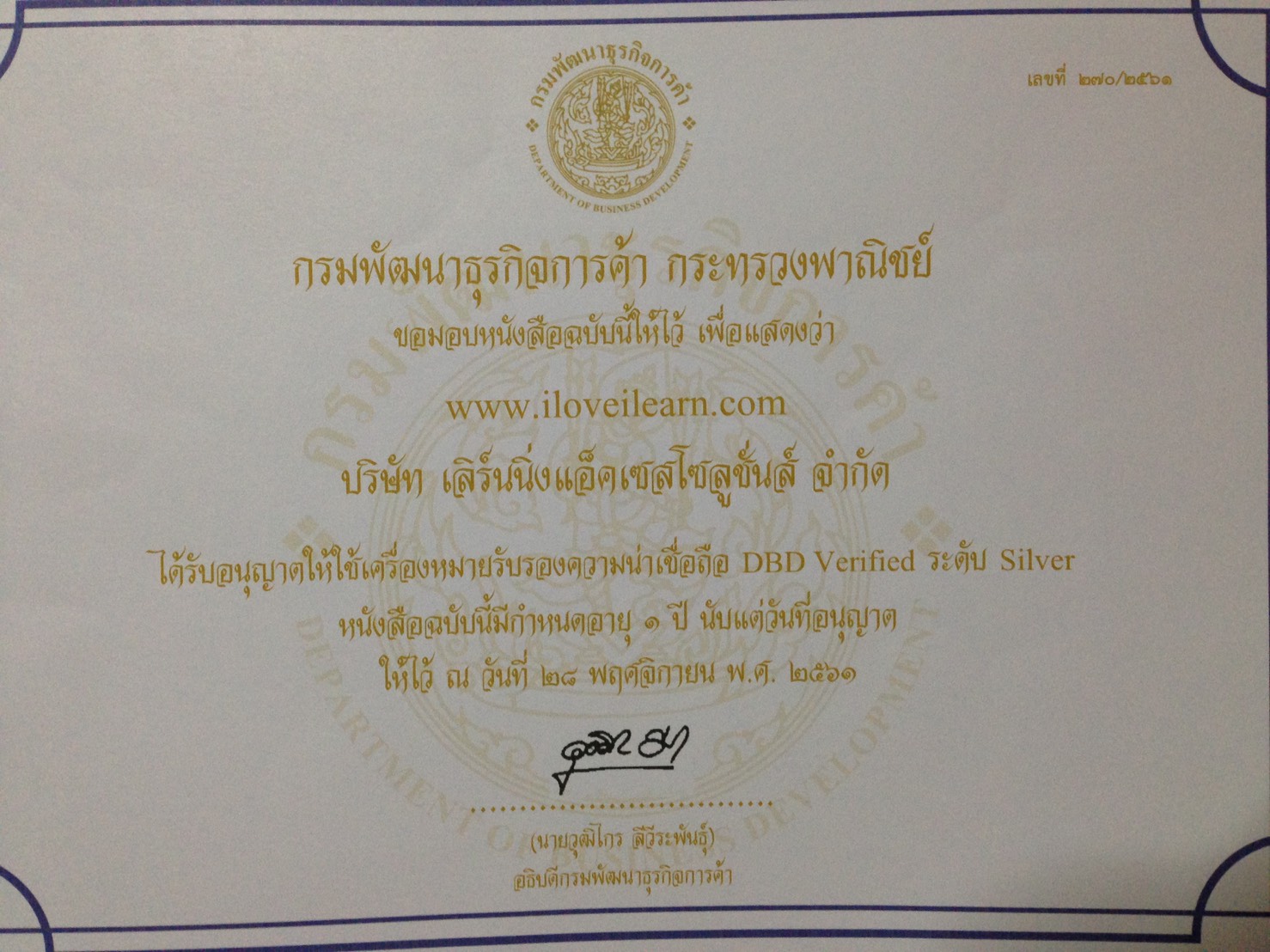 I Love I Learn คว้า DBD Verified Silver เครื่องหมายรับรองความน่าเชื่อถือในการประกอบธุรกิจพาณิชย์อิเล็กทรอนิกส์ จากกรมพัฒนาธุรกิจการค้า กระทรวงพาณิชย์