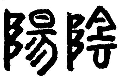 ตัวอักษรจีนโบราณ阳yangและ阴yin ส่วนประกอบด้านซ้ายเป็นรูปเดียวกันเขียนเหมือนกัน หากลองหมุนสัญลักษณ์นี้ทวนเข็มนาฬิกา ประมาณ 90 องศาจะพบว่าภาพที่ปรากฏจะเป็นรูปลักษณ์คล้ายกับภูเขา山shan (รูปลักษณ์ด้านขวาเป็นเครื่องหมายแสดงเสียงอ่าน)